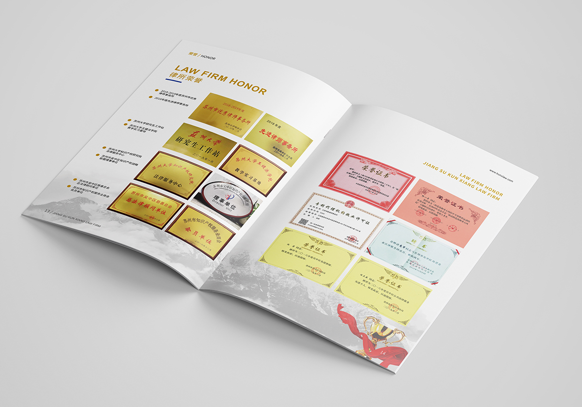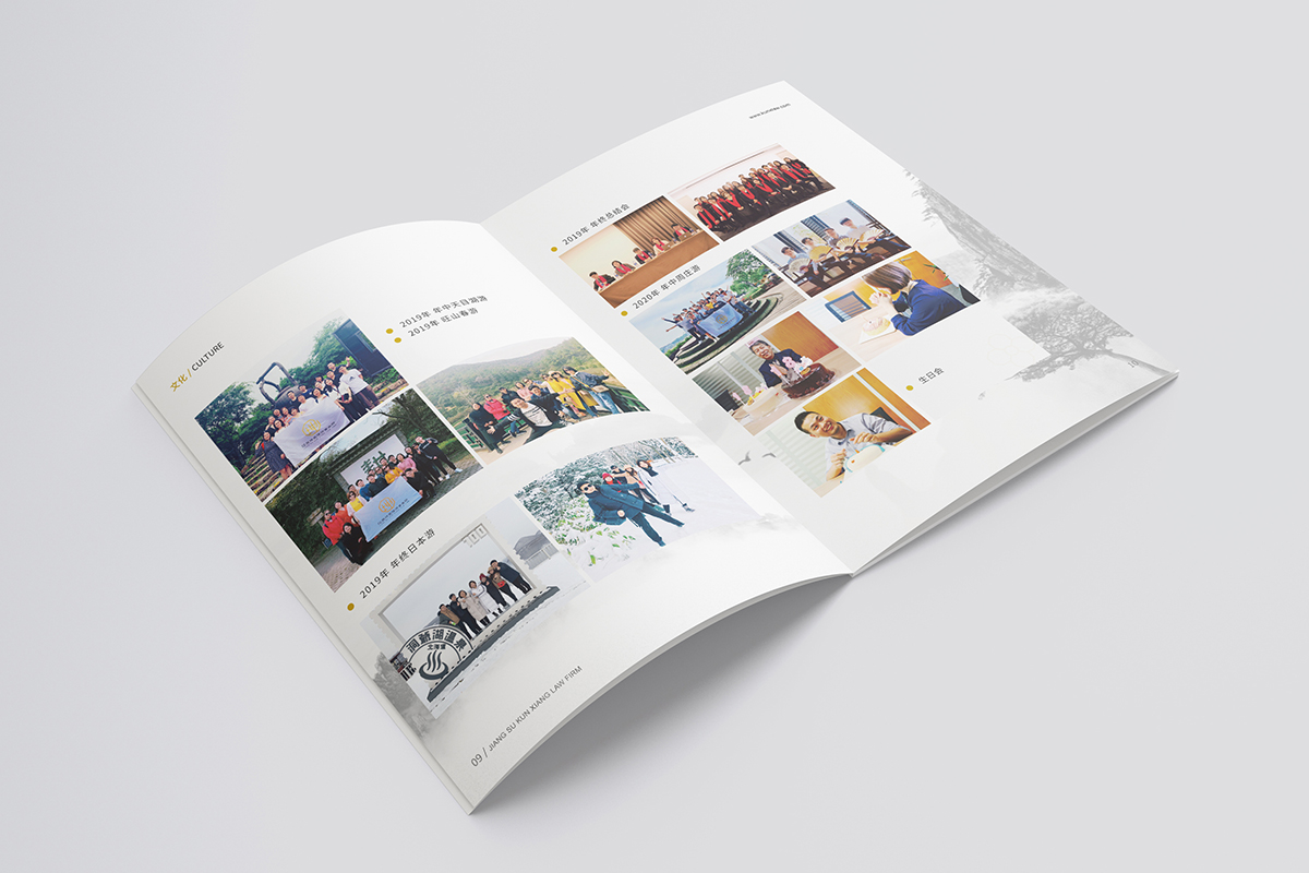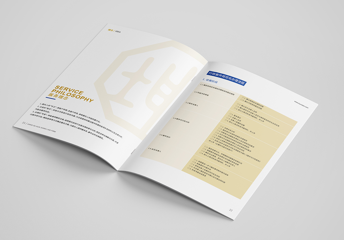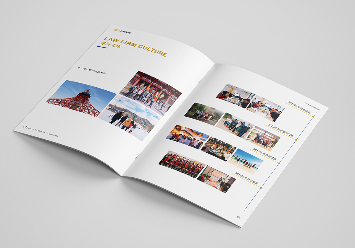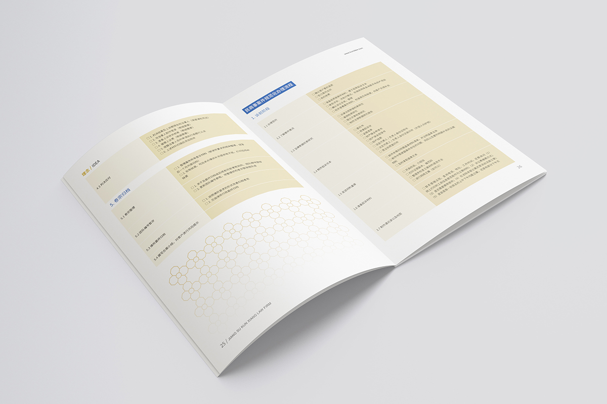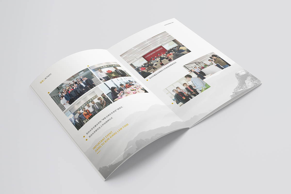 品牌介紹:江蘇坤象律師事務所取名“坤象”,意即“坤厚載物、象天法地”。名如其所,坤象人傳承了“業務上精益求精、擔當上頂天立地、管理上家和萬興”的優良傳統。坤象雖為新生兒,但成員間的團隊化合作和專業化分工已有數年歷史,我們相信,坤象將一如既往地為客戶提供優質法律服務,是值得您信賴的合作伙伴。坤象律師事務所宣傳冊設計整體風格以VI的色彩為基礎,采用黃色搭配,顯得簡潔和高檔,色彩明快。