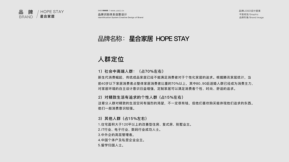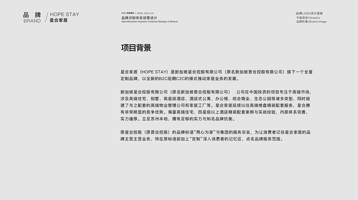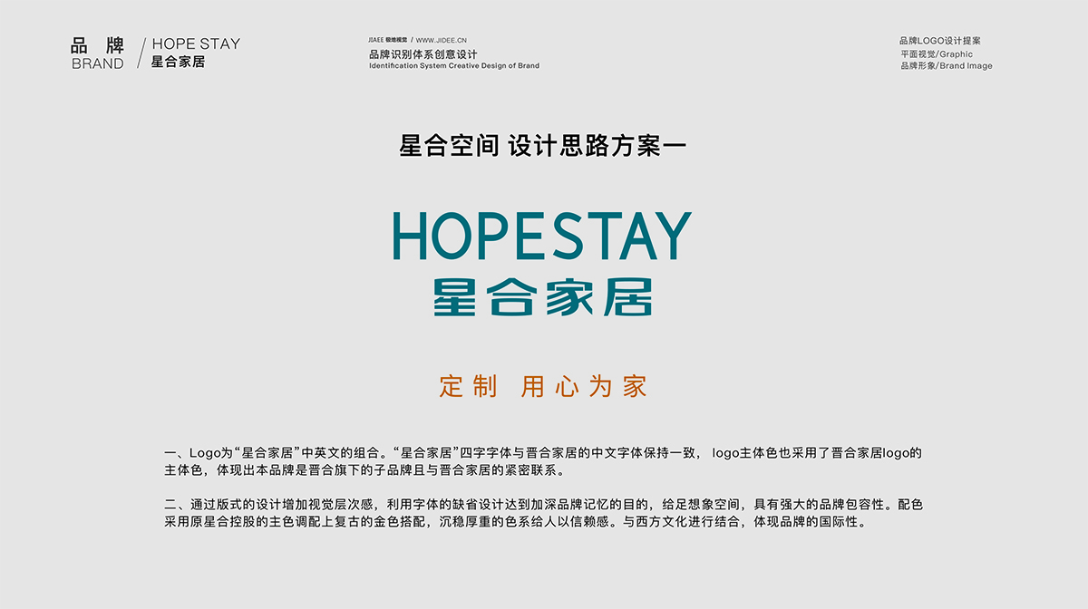 Logo為“星合家居”中英⽂的組合。“星合家居”四字字體與晉合家居的中⽂字體保持⼀致, logo主體⾊也采⽤了晉合家居logo的 主體⾊,體現(xiàn)出本品牌是晉合旗下的⼦品牌且與晉合家居的緊密聯(lián)系。 ⼆、通過版式的設(shè)計增加視覺層次感,利⽤字體的缺省設(shè)計達到加深品牌記憶的⽬的,給⾜想象空間,具有強⼤的品牌包容性。配⾊ 采⽤原星合控股的主⾊調(diào)配上復(fù)古的⾦⾊搭配,沉穩(wěn)厚重的⾊系給⼈以信賴感。與⻄⽅⽂化進⾏結(jié)合,體現(xiàn)品牌的國際化。