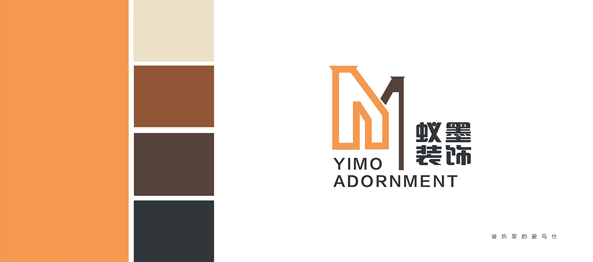 創(chuàng)意思路: 蟻墨裝飾LOGO設(shè)計(jì)選用“YIMO”的首字母“Y、M”進(jìn)行圖形創(chuàng)意,設(shè)計(jì)簡潔,配色以愛馬仕黃色與墨玉色搭配,扁平化設(shè)計(jì)將Y和M巧妙結(jié)合,線條的粗細(xì)對比體現(xiàn)空間,傳達(dá)了企業(yè)的空間裝飾的經(jīng)營范疇。便于傳播和記憶。