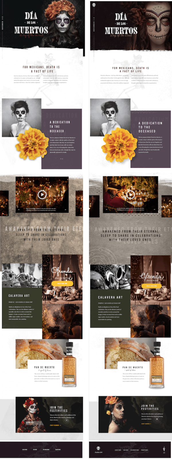 我不久前看到了Taylor Perrin的Díade los Muertos設計,它讓我震驚了。他處理元素的方式非常讓我向往,如美麗的攝影,豐富的紋理和全景布局。