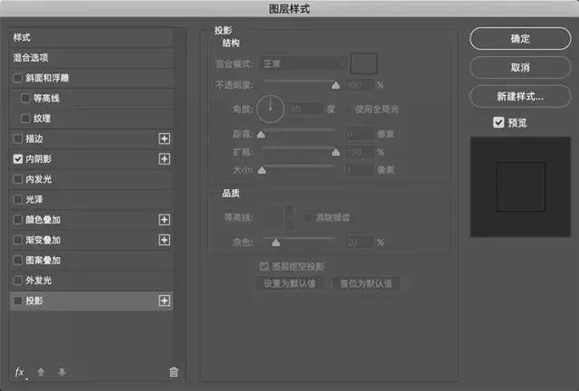 將智能對象圖層的填充不透明度設置為0,添加一個內陰影樣式設置如下。還要創建一個投影,只有1px的大小。這兩個陰影一起形成具有粗糙邊緣的筆畫/輪廓效果。