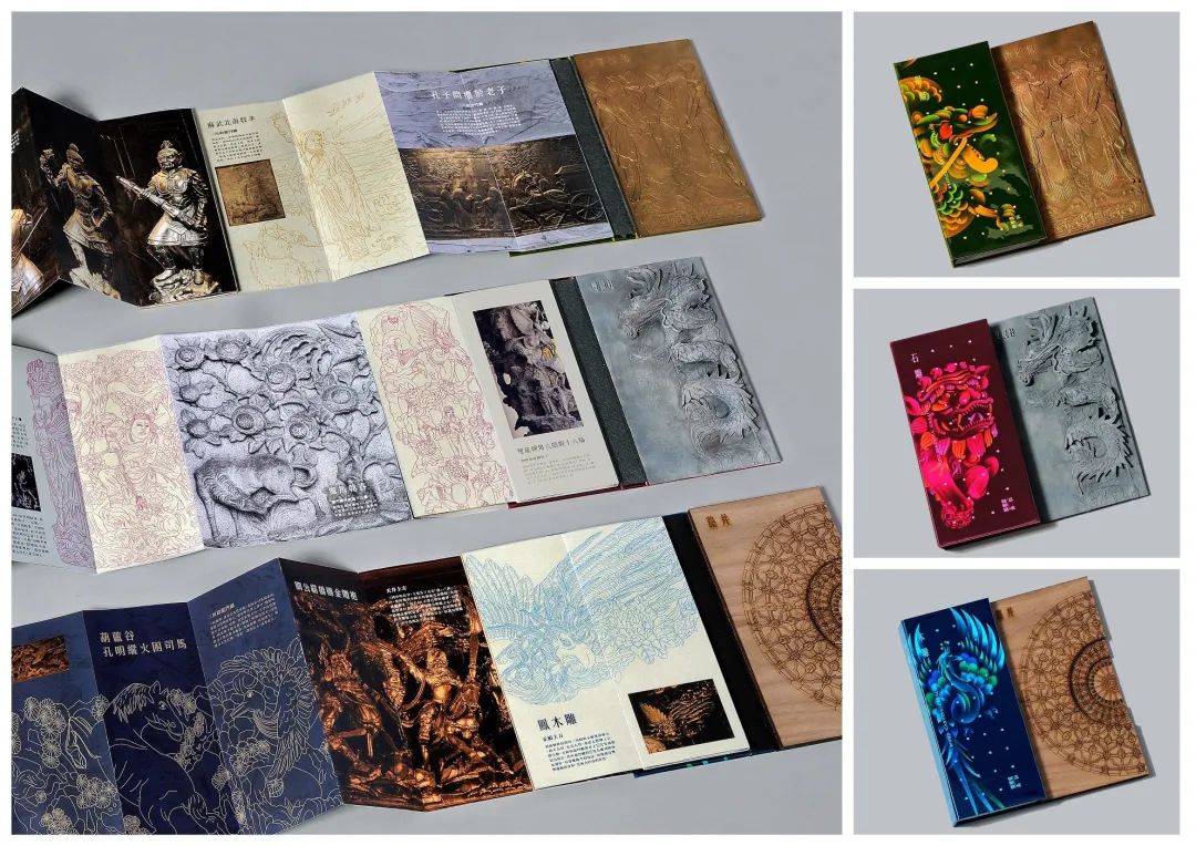 臺灣三峽祖師廟以雕飾藝術(shù)聞名于世, 享有東方藝術(shù)殿堂雅稱。設(shè)計概念將石雕、木雕、銅雕傳統(tǒng)工藝圖騰進行轉(zhuǎn)化設(shè)計, 結(jié)合裝幀設(shè)計與制作工法,重新詮釋傳統(tǒng)藝術(shù)之美。