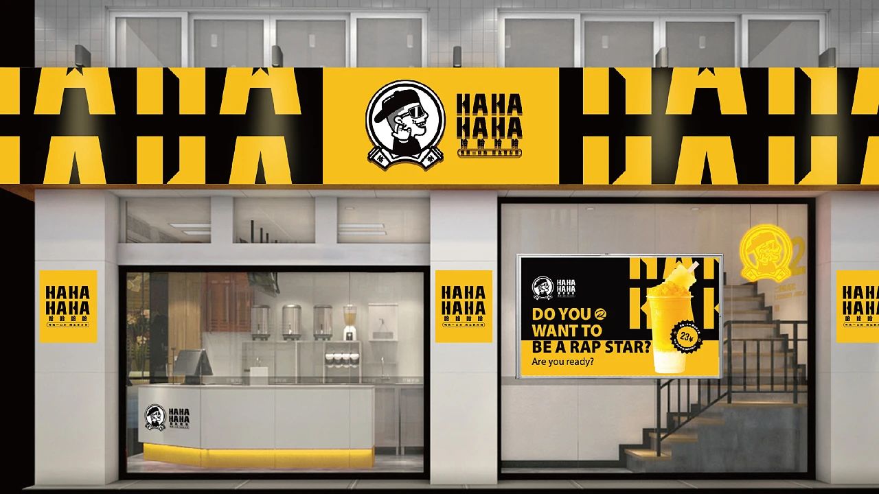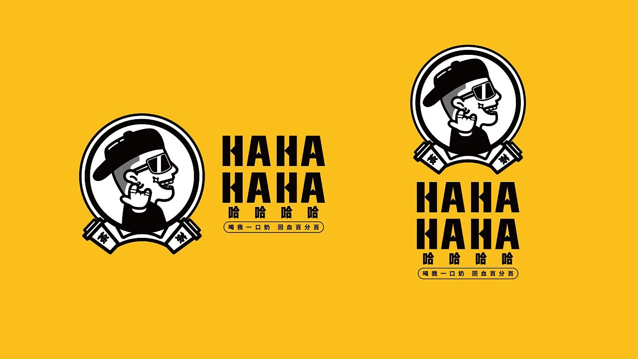 LOGO整體配色比較簡單,使用一種無論怎樣搭配都不會出錯的黑白兩色,外觀看起來就像一個架起來的圓形鏡子,鏡子的底座由兩個寫著“茶”字的杯子構成,清晰的向消費者傳達著該店鋪的類型。鏡子內部一個頭戴鴨舌帽,眼睛戴著一副墨鏡,手擺一個嘻哈文化中特有的姿勢,嘴角上揚還帶著一點亮光,整體看起來就是一個酷酷的潮男,充分向人們展現了店內的品牌文化。字體方面是使用了一種比較硬朗的線條,方方正正,將原本為橫線的地方設計成三角形,就像被刀削過一樣,第一眼看到就會在人心中留下深刻的印象。輔助圖形將眼鏡、鴨舌帽和潮男手勢,以及街舞圈中經常說的口頭禪“RICH”融入進去,向人們傳達著嘻哈文化中的不拘小節。下面一句“喝我一口奶 回血百分百“獨特的標語,不僅朗朗上口,讓人容易記住,而且為品牌塑造了形象,向潛在客戶傳達信息,勾起消費者的購買欲望。色彩方面LOGO使用黑白黃三色做為主色調,黑白兩色雖然怎么搭配都不會出現錯誤,但這兩種顏色在一起看起來比較單調,所以又添加了象征希望與活力的黃色,三種顏色在一起,帶給人一種比較時尚的感覺,看著讓人充滿活力。