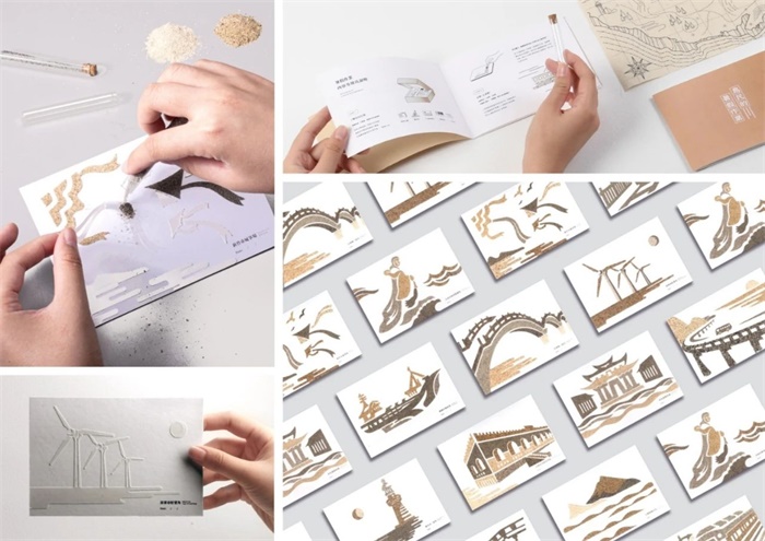 鯤鯓為海上沙洲為臺灣特有地形,七座鯤鯓因職人們的努力日月壯大守護著臺南沿海。將線條、交織、堆疊三大要素運用在整體材質及視覺上,并結合視頻及專刊記錄職人背后的故事