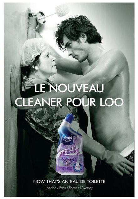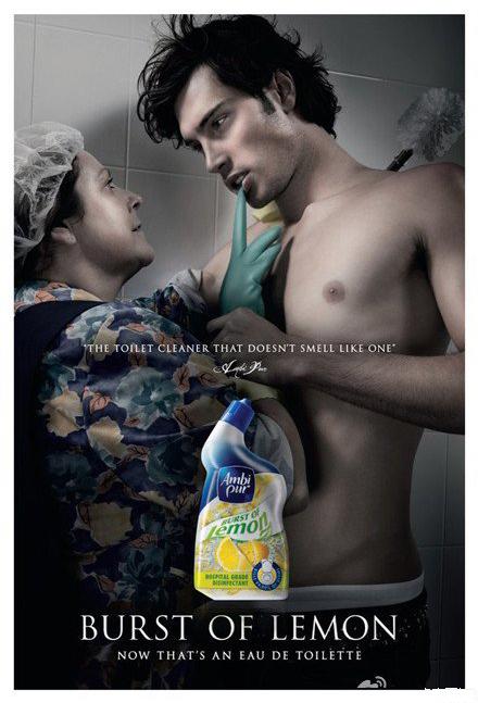 【浴廁清潔劑創意平面】“現在,這也是香水了!”——美女換成了歐巴桑!絕對的勵志啊。。。可是哥怎么微微有點HOLD不住捏!