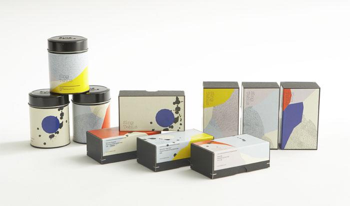 總部設(shè)在哥本哈根的丹麥瑞典平面設(shè)計(jì)工作室設(shè)計(jì)為Sing Tehus茶葉系列設(shè)計(jì)的巴黎現(xiàn)代美術(shù)觀感的包裝外觀形象