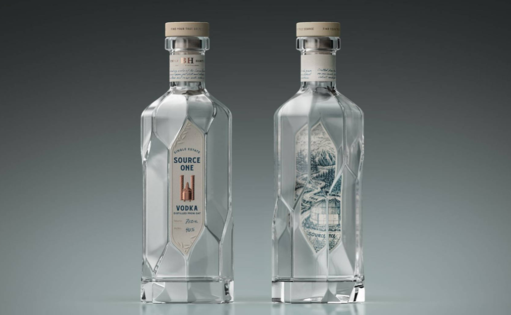 “源頭一號(hào)”釀酒廠生產(chǎn)的烈酒采用美國內(nèi)華達(dá)山脈的冰雪融水制作而成。當(dāng)?shù)厝藢⑷谒畠?chǔ)存在水井中,稱為“井水一號(hào)”,該伏特加因此得名“源頭一號(hào)”。“源頭一號(hào)”包裝設(shè)計(jì)的靈感來源于復(fù)雜的溫室建筑元素,由偏置面組成的玻璃瓶結(jié)構(gòu),在轉(zhuǎn)動(dòng)時(shí)會(huì)產(chǎn)生螺旋狀插圖,形成一個(gè)不停轉(zhuǎn)動(dòng)的幻覺。