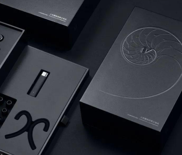 小米耳機(jī)的包裝設(shè)計(jì)頗為驚艷。鸚鵡螺骨骼線以黃金比例浮雕在純黑色封面上,高雅而又神秘。耳機(jī)嵌在鸚鵡螺中心,傳達(dá)出“讓耳朵聽到最純粹的音樂”的理念。包裝紙選擇低光澤度的銀紙,以表現(xiàn)產(chǎn)品的品質(zhì)。