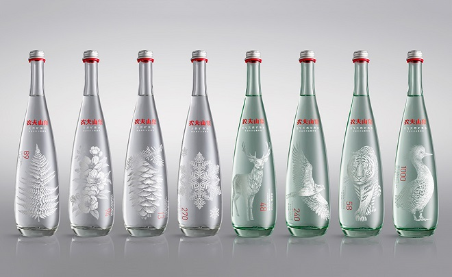 比如橫掃2015年眾多獎項、斬獲包裝設計類最高獎——FAB最佳作品獎的高端水系列瓶裝設計。瓶身的設計充滿傳統中國藝術色彩,選取了長白山的典型天氣和植物以及長白山四種典型的動物,體現了其水源地的自然生態。