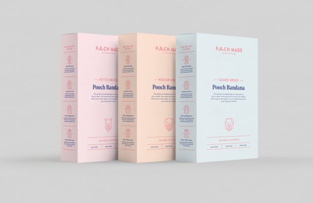 Pooch Bandana 該品牌以簡約而輕松的形象來吸引觀眾,插圖和動畫展示了品牌的趣味性和受眾。在品牌包裝上、印刷、數字和社交媒體上都統一使用這些元素,形成強烈的品牌視覺效應。