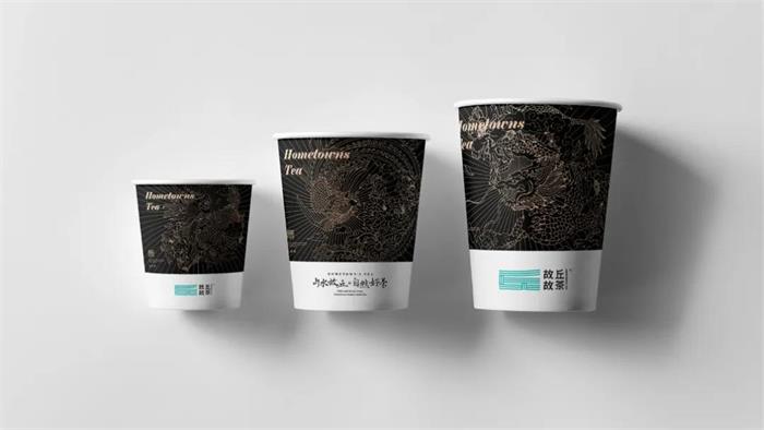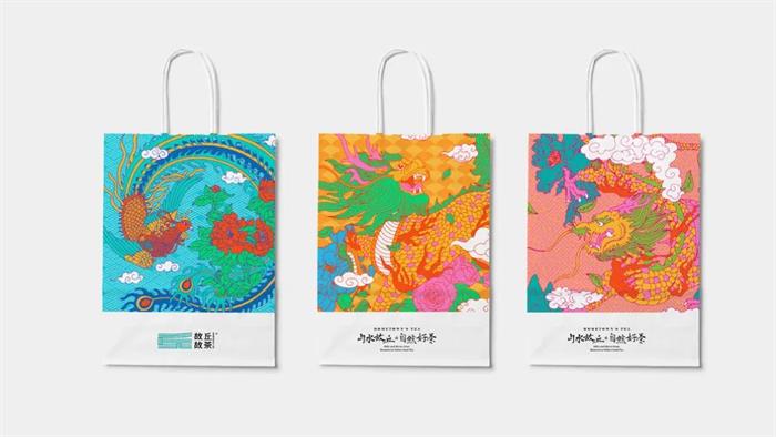 這個(gè)茶飲的名字就很古風(fēng),品牌的視覺(jué)設(shè)計(jì)主要用插畫(huà)來(lái)表現(xiàn)。龍與鳳的圖案作為元素,在花和云騰的背景融為一體。最大的賣(mài)點(diǎn)在于顏色的搭配,幾種艷麗的顏色調(diào)低飽和度,撞色的手法看起來(lái)很出彩。圖案的處理使用線描的方式,用新式的國(guó)潮風(fēng)格來(lái)演繹,像這樣中國(guó)風(fēng)的茶飲外表還是很引人注意。去掉顏色,又是一番風(fēng)景,反差色的多線條設(shè)計(jì)很密集,勾勒出來(lái)的圖形顯得很有氣勢(shì)。