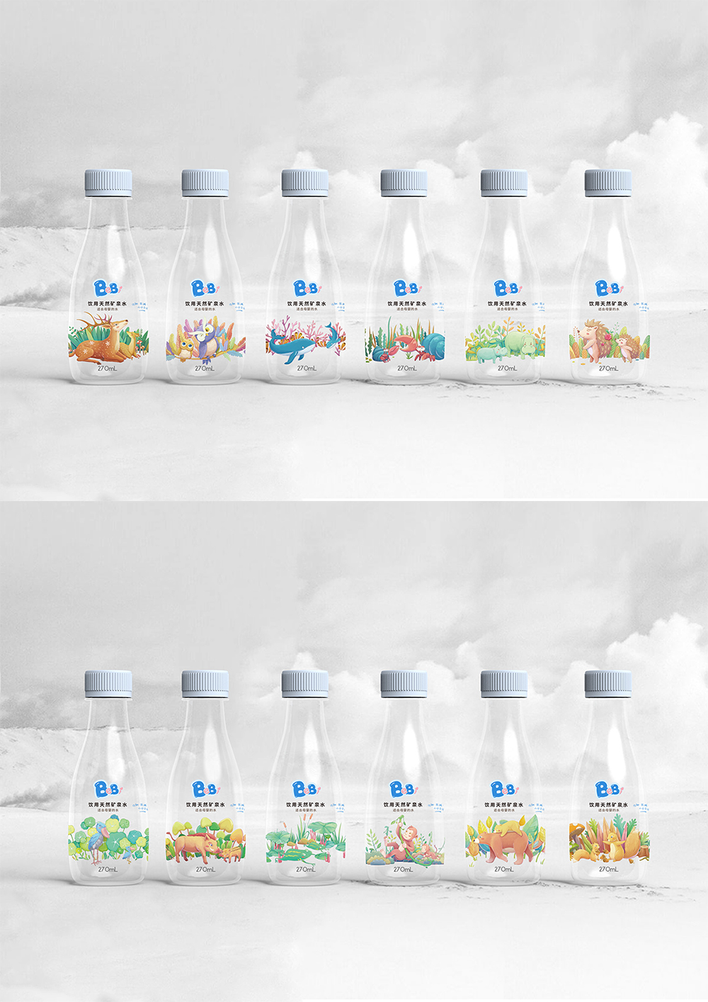 設計團隊用12幅插畫來秉承愛的理念,溫暖呵護著媽媽和寶貝,拉近親子關系。為了照顧媽媽需要給寶寶沖調奶粉的需求,包裝使用了小瓶裝,一次飲用減少污染,兒童也方便攜帶,使媽媽寶寶用水更加放心、安心。
