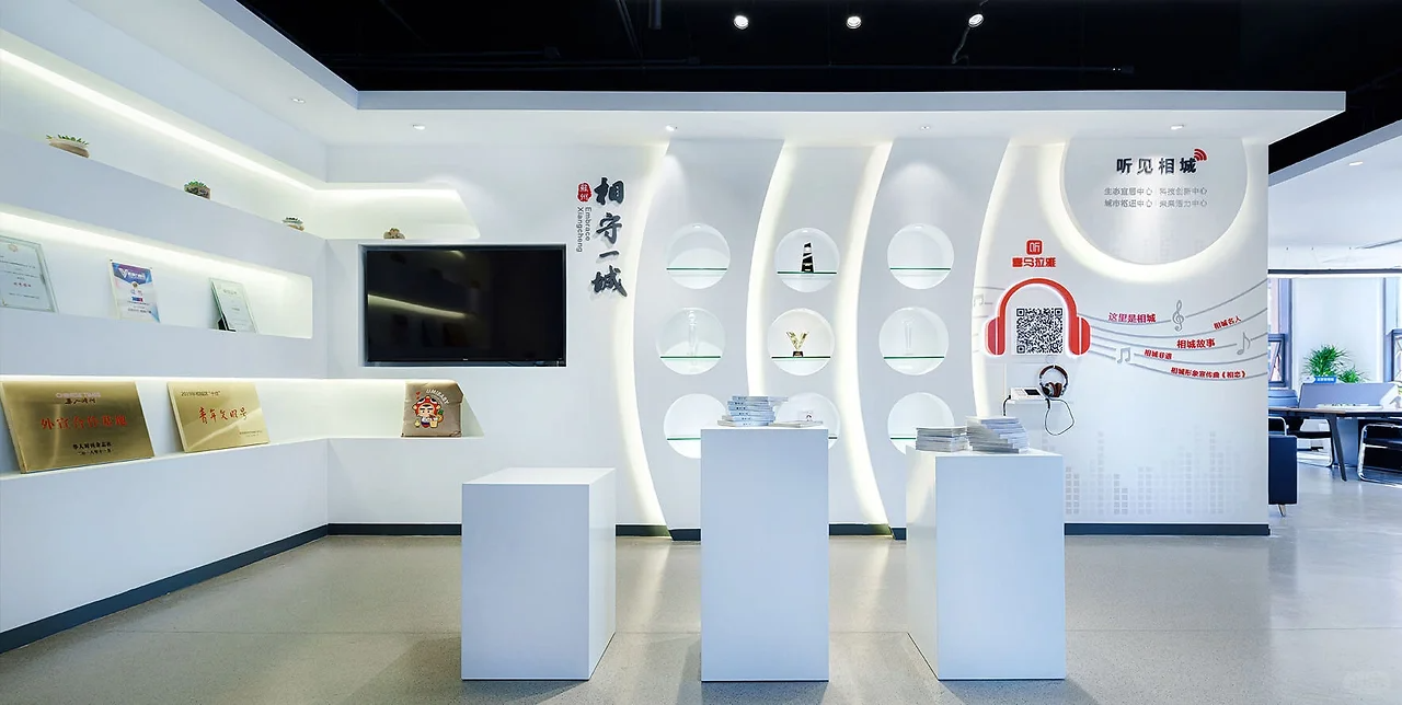 文化墻不應(yīng)是孤立的墻面裝飾,而應(yīng)與展廳整體空間形成互動。可結(jié)合墻面的結(jié)構(gòu)特點(diǎn),設(shè)計(jì) “嵌入式” 或 “延伸式” 造型,讓文化墻成為空間的有機(jī)組成部分。