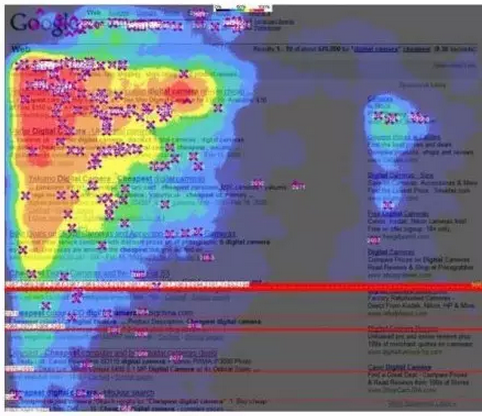 在谷歌搜索頁面,前五個搜索結(jié)果獲得的“眼球”最多。紅線代表你必須滾動鼠標(biāo)翻頁了。