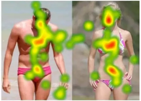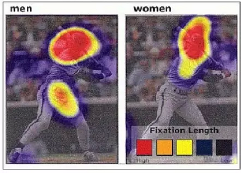 女人會關(guān)注人體臉部和軀干(左圖)。男人會更多關(guān)注旁邊的雜物(右圖)。