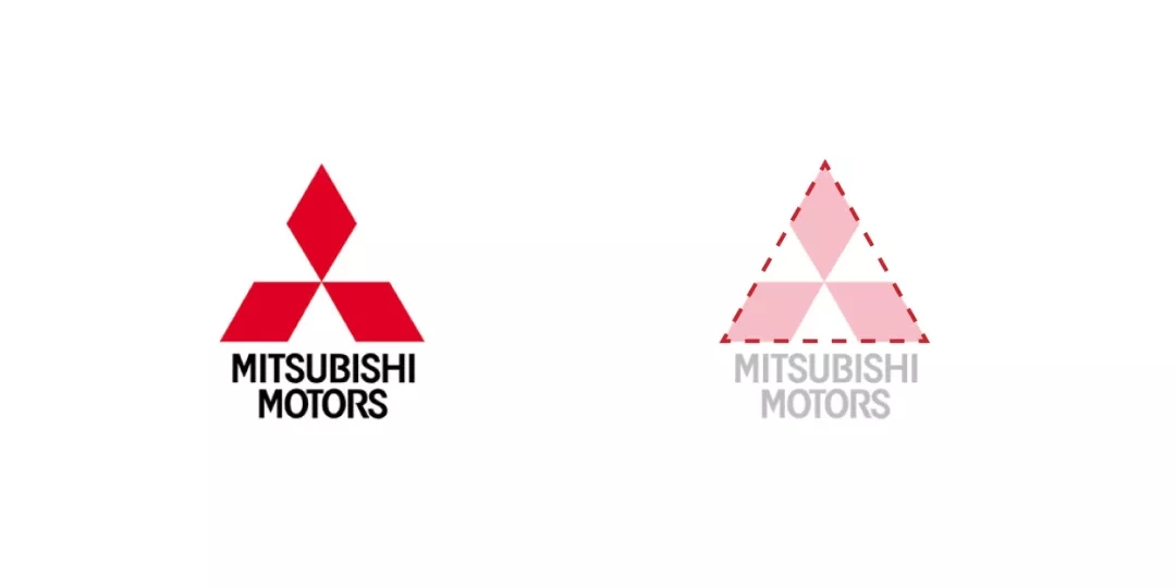 三菱LOGO內(nèi)部三個(gè)尖銳圖形菱形結(jié)合外輪廓三角形的構(gòu)成方式。具有非常強(qiáng)烈的主宰氛圍,對稱式的處理具有穩(wěn)定性,正符合所屬的汽車行業(yè)追求的穩(wěn)定感和速度感。