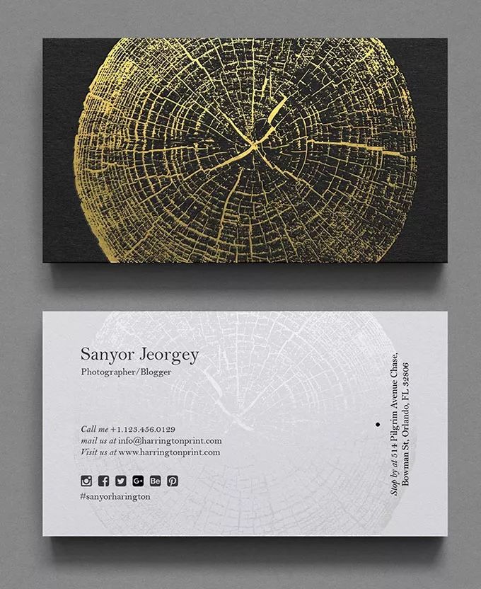 ③個性攝影圖片的運用。攝影圖片通常能夠給我們一種真實直觀的視覺感受,能夠最大程度的還原情境,引起觀者共鳴。一張出色的攝影圖片加上簡單的文字信息就能夠成為一張充滿個性的名片作品。