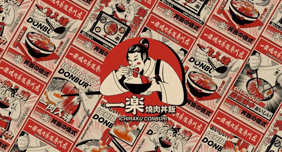 這個(gè)日料的品牌風(fēng)格與大眾小清新不同,參考了日本街道文化熱鬧的沖擊。插畫的靈感是來自于吃燒肉丼飯時(shí)的步驟,背景是放射線線條來創(chuàng)造炸裂的效果。顏色上的漸變,有著很強(qiáng)的節(jié)奏感,兩者搭配,就是這種日式熱血復(fù)古設(shè)計(jì)。強(qiáng)烈的顏色反差,具有力量感的字體,給年輕消費(fèi)者營(yíng)造出元?dú)鉂M滿、熱血的氛圍,每一個(gè)細(xì)節(jié)綜合起來達(dá)到最大化效果。許多的日本料理餐廳,都喜歡原木的和風(fēng)設(shè)計(jì),更能抓住地道的日式風(fēng)格,但這家日料的品牌VI設(shè)計(jì),卻看中了日本街道文化,參照街道繁雜熱鬧時(shí)對(duì)人的沖擊心理,將動(dòng)漫中熱血的氣氛,用反差色的對(duì)比、炸裂的畫感來表現(xiàn),給餐廳增添不一樣的用餐體驗(yàn)。相信不少的人都看過日本動(dòng)漫,劇情的設(shè)定、畫面的設(shè)計(jì)都是非常熱血沸騰,讓人看了有種心潮澎湃的感覺,這點(diǎn)可以進(jìn)行參考,以中國(guó)的人物角色為主,同樣可以設(shè)計(jì)出這種風(fēng)格。