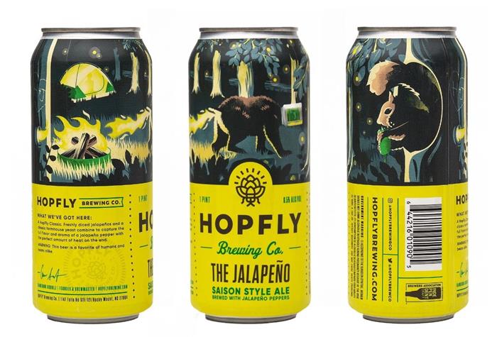 同樣是啤酒,來自北卡羅來納州的啤酒廠的品牌Hopfly,體現的不是詩意,而是通過插畫來表現南方的冒險精神。