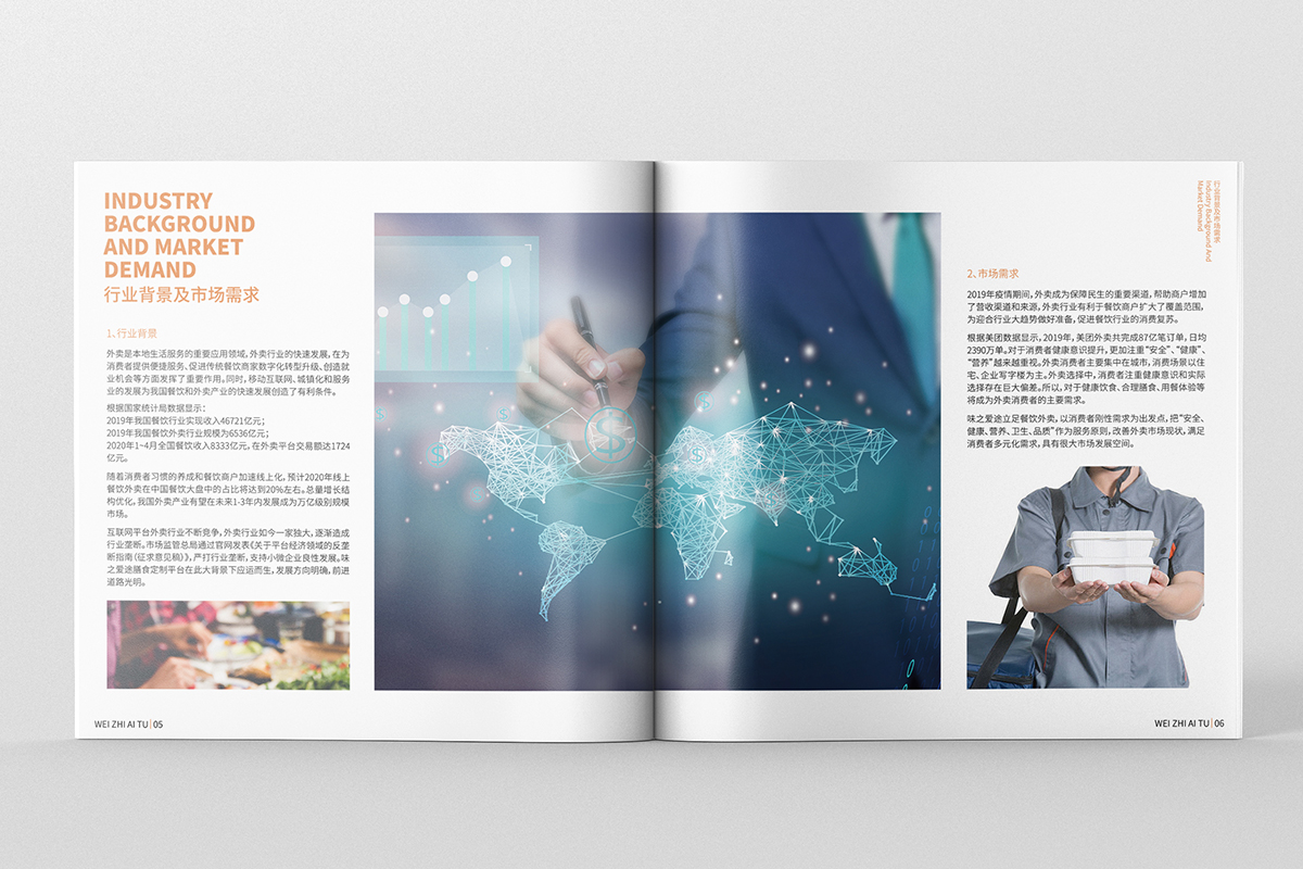本案例是為餐飲平臺的招商宣傳冊設計。品牌理念主打“安全、健康、新鮮、營養、溫暖、有愛”品牌餐廳家常菜系,提前預定,當天制作,保證足量與菜品新鮮,突破地域限制,以創業園、寫字樓等為集中消費區,實現全城專屬定向配送,解決消費者午、晚健康營養的兩餐問題,同時把愛與溫暖送給為理想奮斗的人們。所以在畫冊宣傳中,不需要華麗、復雜的設計,只需要將產品圖片很好地表現出來,所謂眼見為實,讓人們能看到實物圖片,是最具有說服力的設計。